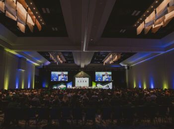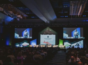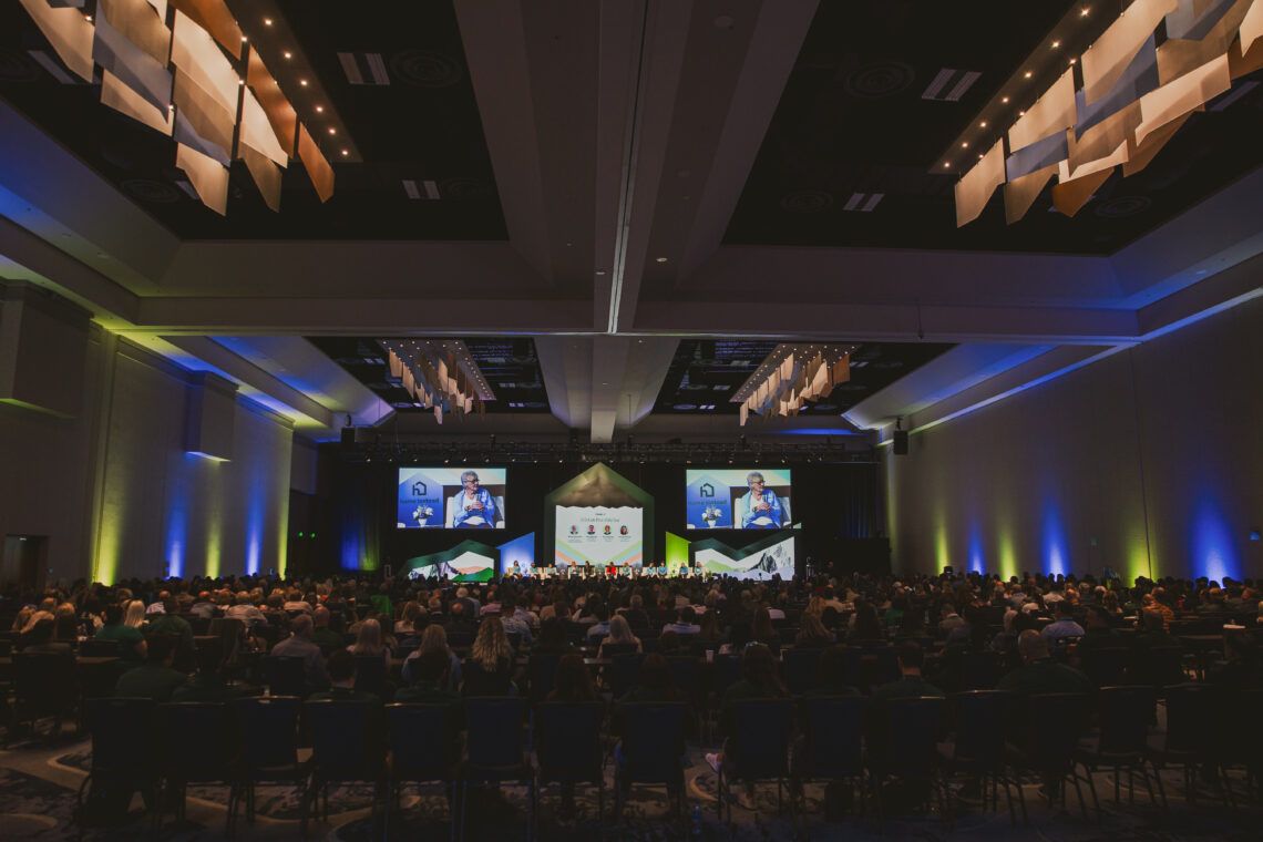 Year over year, Sonburst pushes the boundaries of production innovation. Whether it be implementing an 80′ wide screen that requires 3 edge-blended projectors to fill, or literally constructing a to-scale house as the stage inside the ballroom, the Sonburst team has consistently dazzled Convention audience with incredible production elements.